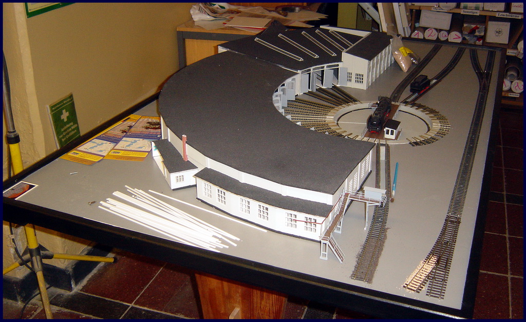 Lokschuppen 3-Stralsund Das Modell hat den Transport ohne nennenswerte Schäden überstanden. Zeit für die letzten Handgriffe.