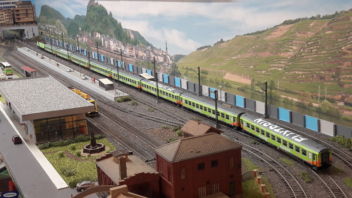 Flixtrain : Als Erweiterung des Flixbusangebote wurde der Flixtrainzugbetrieb 2018 aufgenommen. Dachgesellschaft ist Flixmobility. Nun zu den Modellen, hier gezeigt ein 8 teiliger Flixtrain im Zustand 2018 mit den ersten in Betrieb genommenen Wagen.