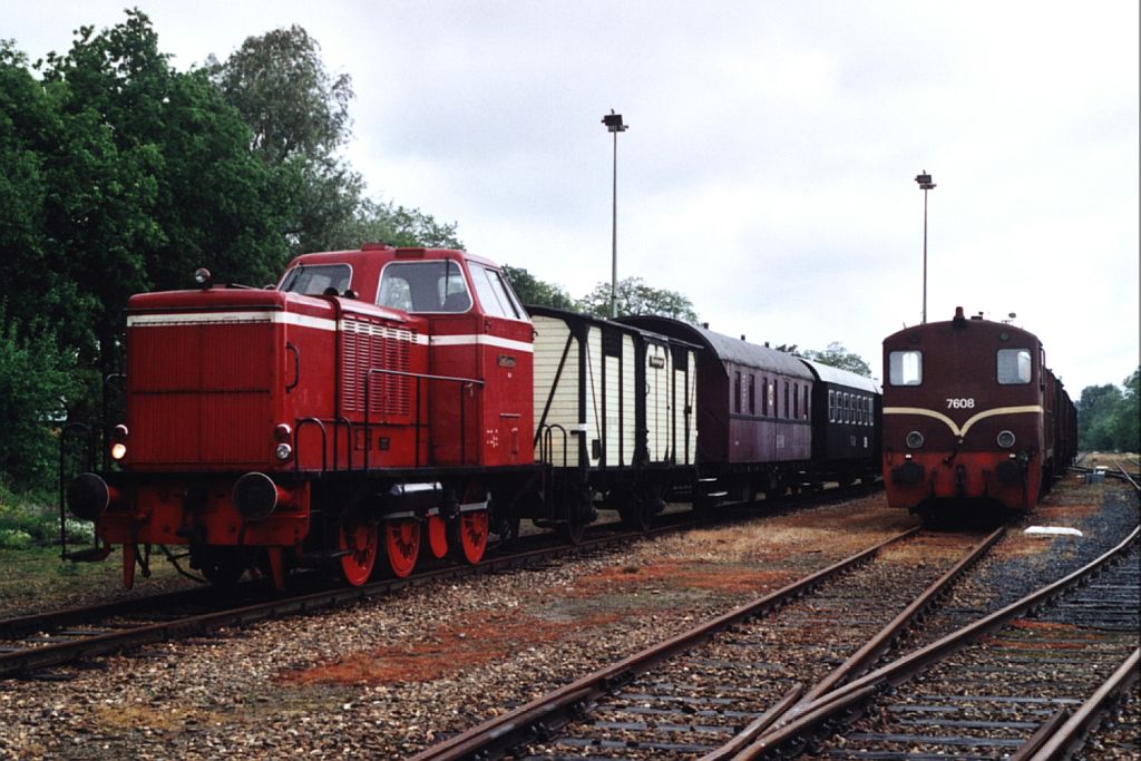 Lok 12 (ehemalige DL1 der Wittlager Kreisbahn) der Stichting Stadskanaal Rail (STAR) mit einem Museumszug Stadskanaal-Musselkanaal in Stadskanaal am 25-4-2011.