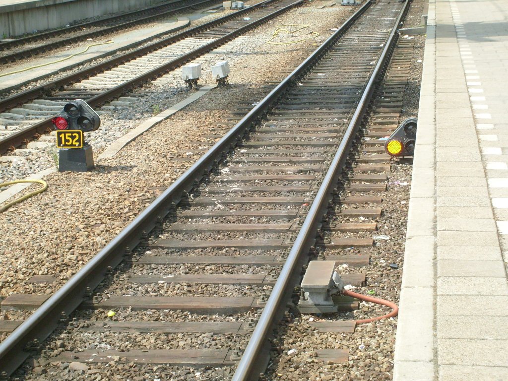 Im Bahnhof Venlo sucht man vergebens nach großen Signalen. Hier sind alle Signale eher klein. Hier zu sehen das Signal 164.