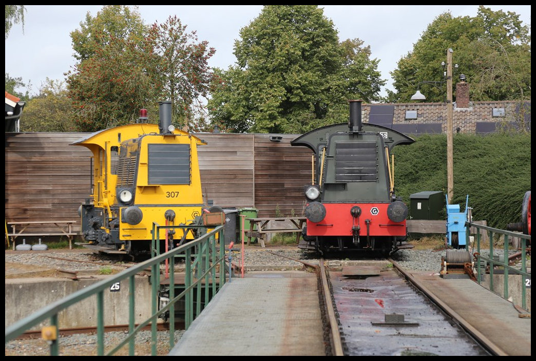 Auch außerhalb der Veranstaltungstermine ist die VSM in Beekbergen immer einen Besuch wert. Da tagsüber häufig Vereinsmitglieder irgendwelche Arbeiten verrichten, ist auch der Zugang zum Gelände zumeist frei. Auch am 4.10.2023 war das der Fall. Beim Blick über die Drehscheibe standen zwei ehemalige NS Kleinlokomotiven passend im Tageslicht.
