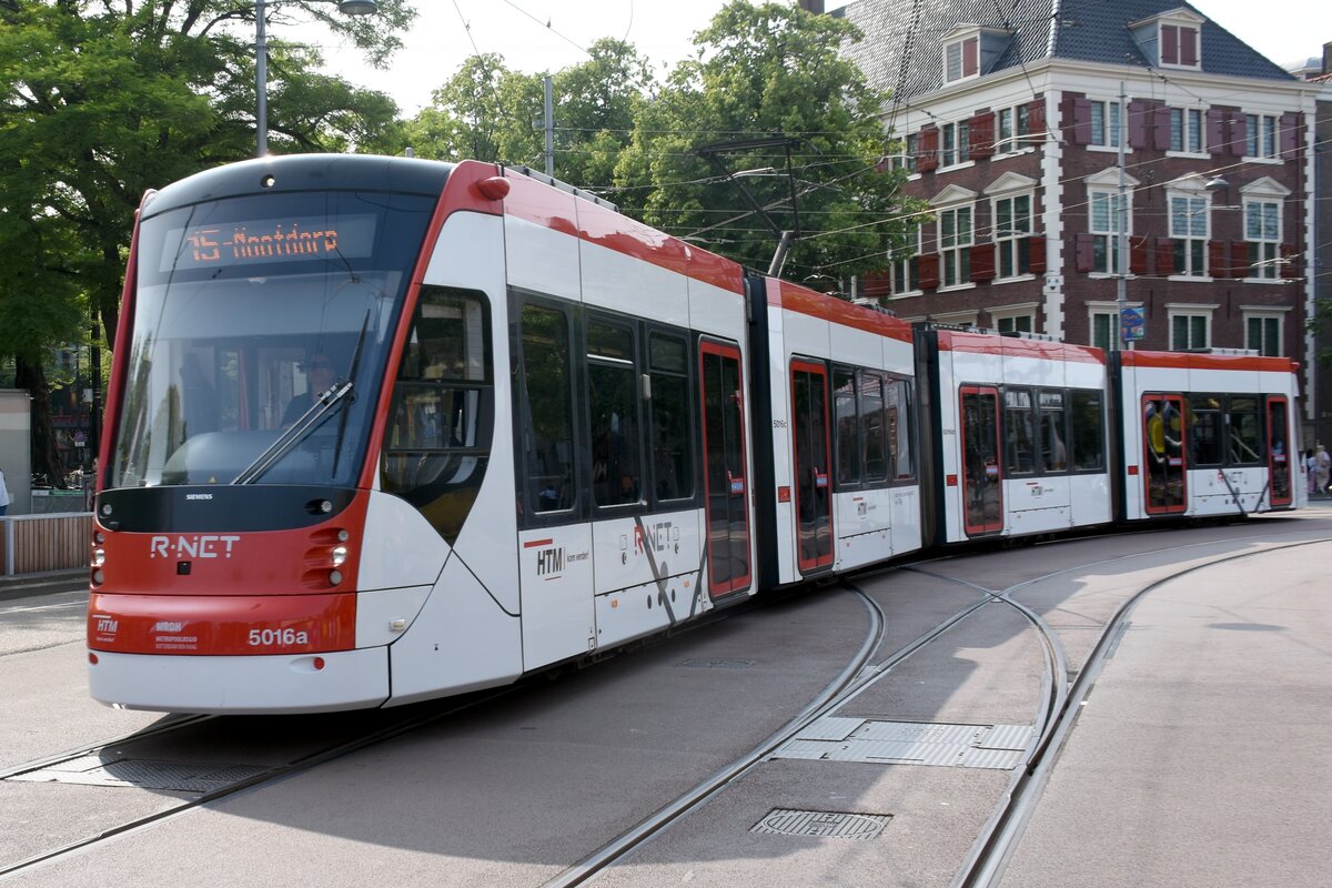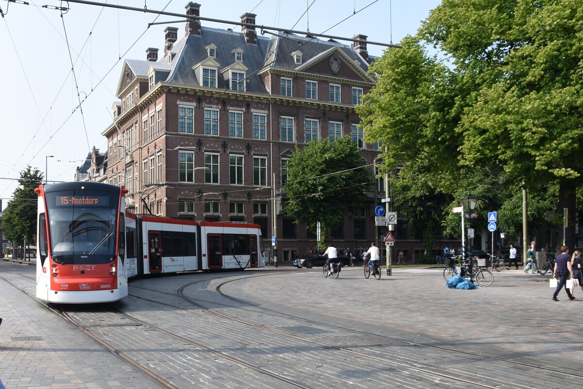 DEN HAAG (Provinz Zuid-Holland), 31.05.2025, Straßenbahnzug 5001b als Straßenbahnlinie 15 nach Nootdorp in Höhe des Hofvijfer
