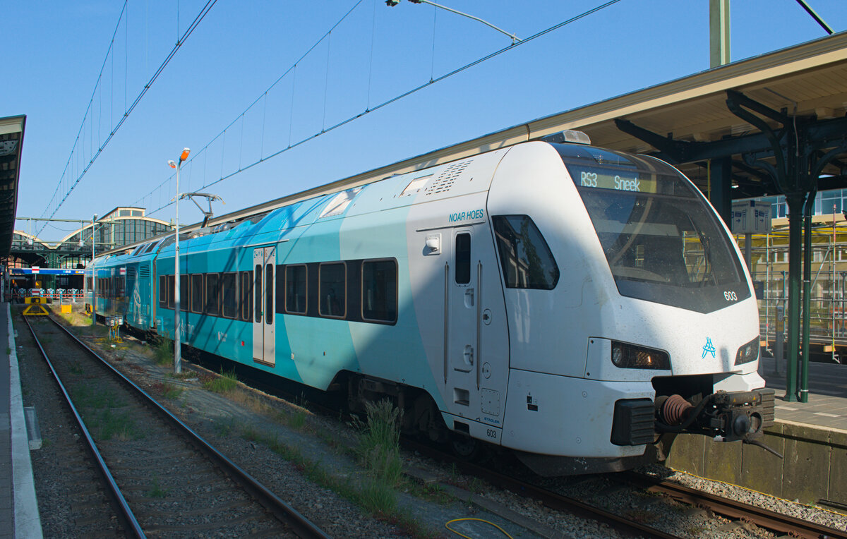 Der "Dreiländerzug" wartet im Bahnhof Liège-Guillemins auf Abfahrt in Richtung Maastricht und Aachen Hbf. 1. Mai 2025.
