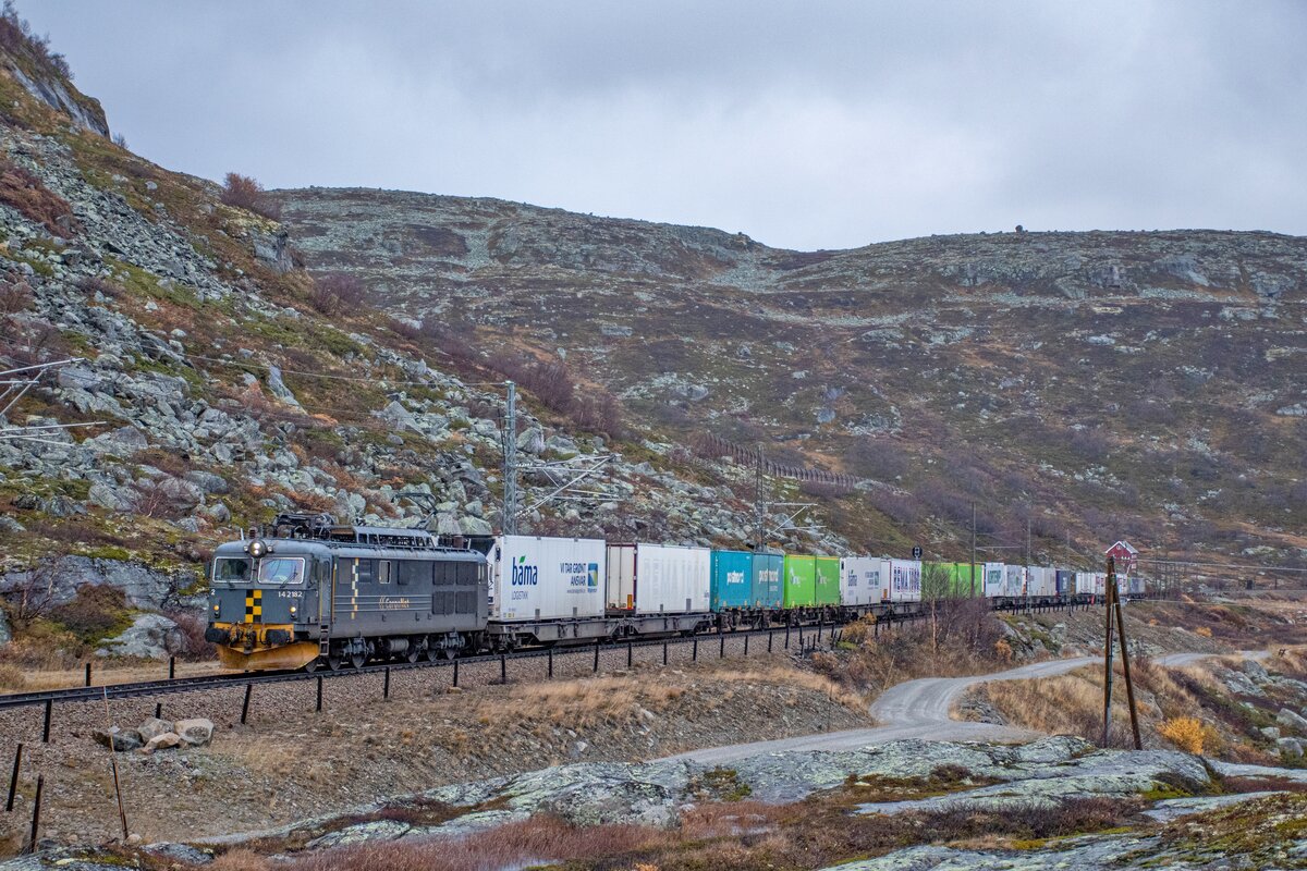 Güterzug von CargoNet auf dem Dovrefjell kurz vor der ehemaligen Station Fokstua am 01.07.2010. Auf beiden Seiten der Bahnlinie befindet sich hier ein sehenswertes Vogelreservat.