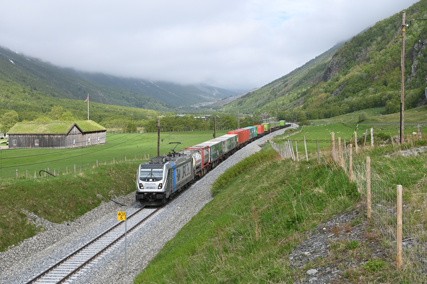 Interessant, dass die 18 2242 jetzt wieder im regulären NSB-Dienst steht. Im Juli 2017 waren die NSB-Logos durch angeschraubte Plaketten der Flåmsbana überdeckt (siehe mein Bild vom Bahnübergang). Die 18 2242 ist gewissermaßen meine persönliche El 18. Im Hobbyraum steht sie im HO-Maßstab als Sonderausführung von NMJ/Roco mit exakt dieser Sonderlackierung
