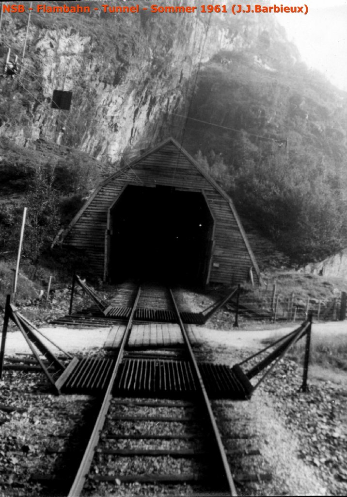 NSB - Immer die Flambahn im Sommer 1961. Hier sehen Sie eine Schneegalerie aber weiter fährt der Zug in einem Tunnel - Foto: J.J.Barbieux