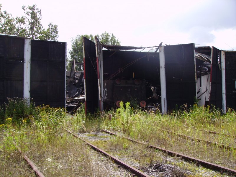 Der Portalkran des Ehemaligen Bahnbetriebswerks Pyskowice (Sommer 2005) Heute findet man hier ein Eisenbahnmuseum mit vielen Dampflokomotiven!