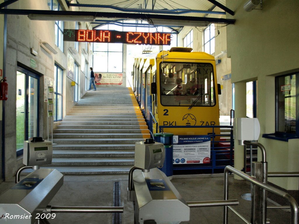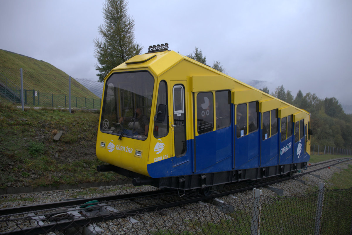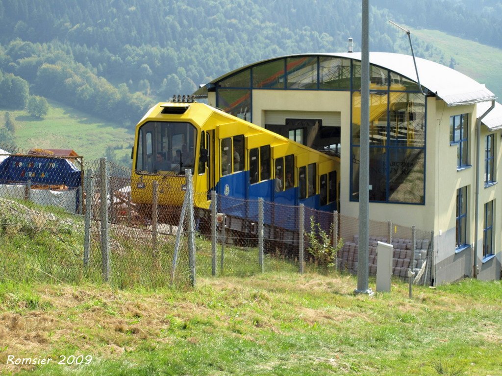 Bergbahn Góra Żar.Wagen nr.2 geht an der Bergstation,nr.1 nach unten.Bild am 20.09.2009.