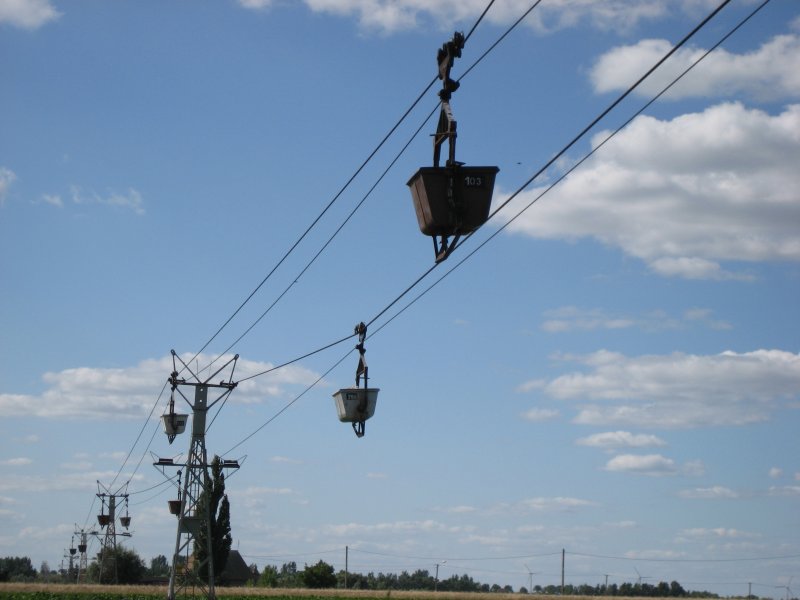 Die Zweiseilbahn in Janikowo - die Wagenkasten (Kippkasten).