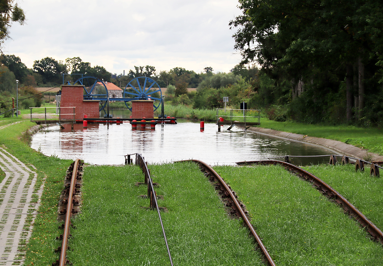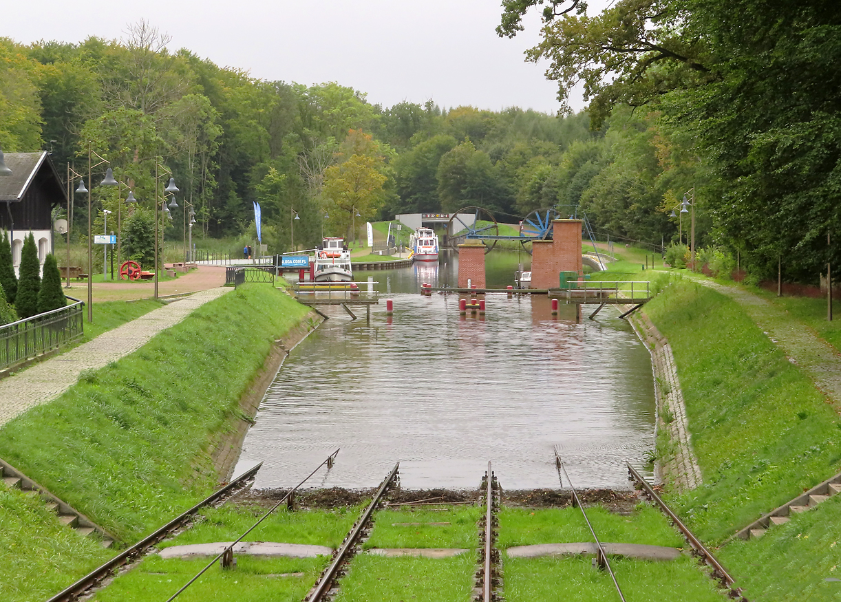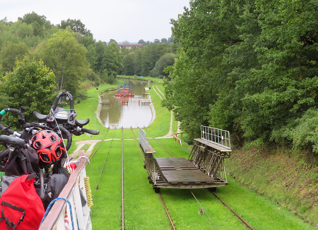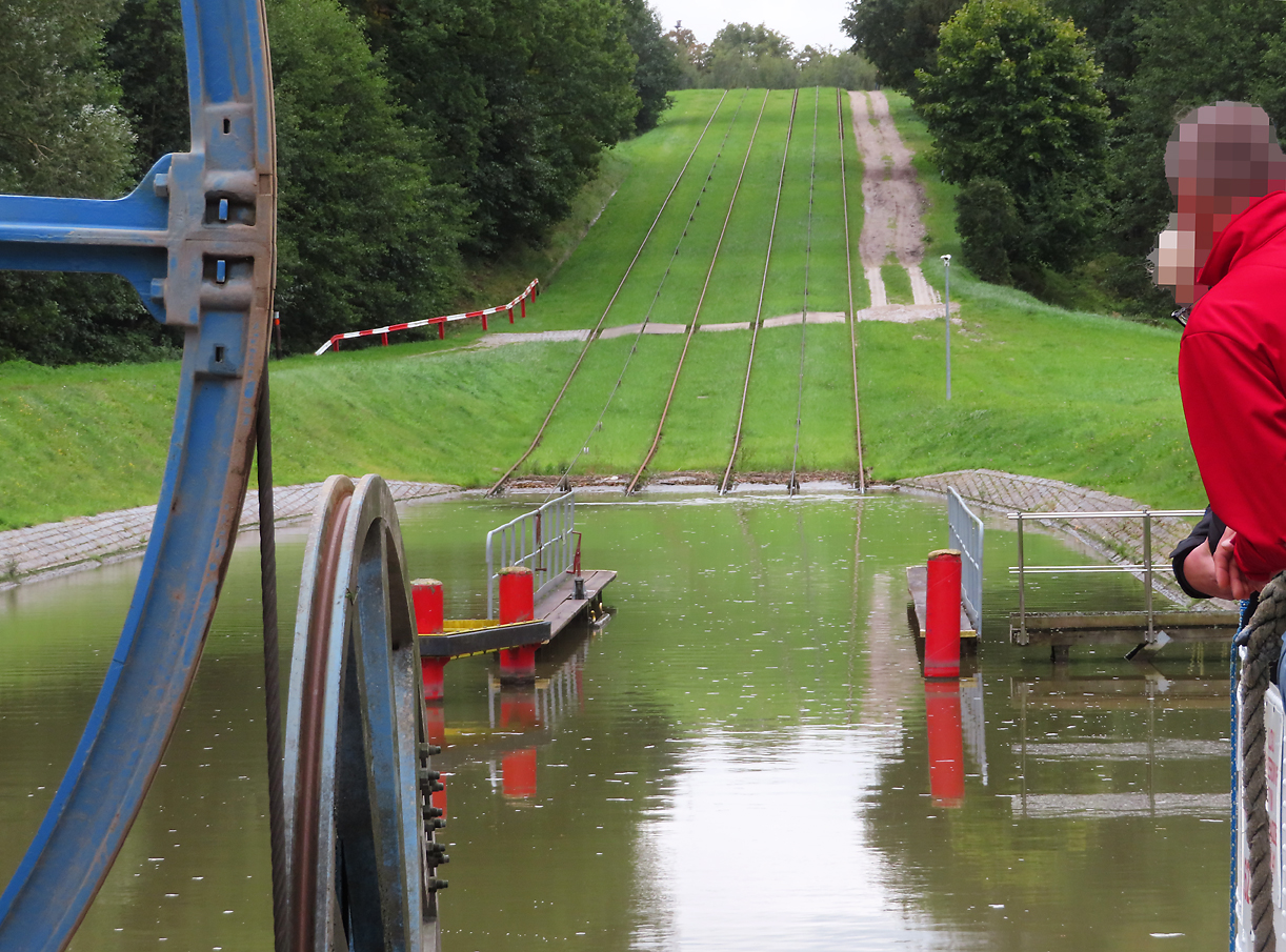 Seilumlenkrolle. Ein beladener Wagen kommt herunter, ein leerer Wagen geht nach oben. (06.06.2012)