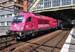 Die PKP Intercity EU 44 "Husarz - Husar" 5 370 001 (91 51 5370 010-8 PL-PKPIC 1251), eine Siemens ES64U4-D, hat am 27.06.2017, mit dem EIC 17003 / EC 44 "Warszawa-Berlin-Express", den Bahnhof Rzepin / Polen (deutsch Reppen) pünktlich erreicht. Doch hier hat er und somit auch wir 2,5 Stunden Zwangsaufenthalt.