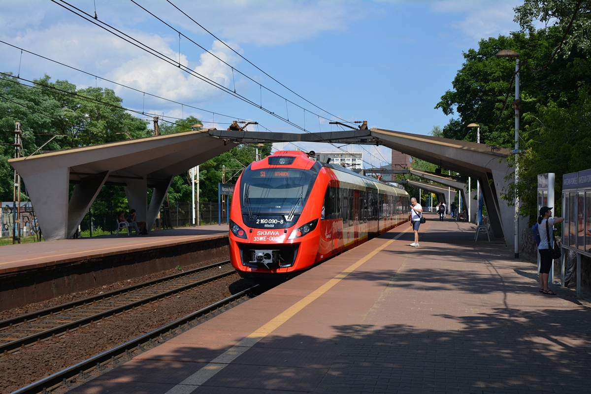 Ein mir nummernmäßig unbekannter PESA Elf der SKM befährt eine der Vorbrücken einer Eisenbahnbrücke über die Weichsel.