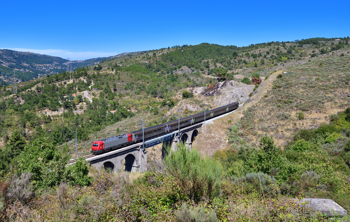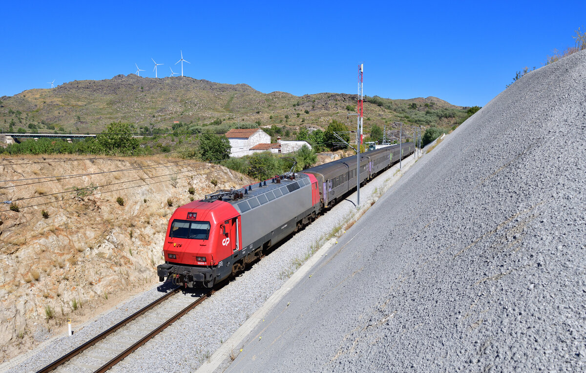 Der Triebzug CP 0465 und die Elektrolokomotive CP 5606-7 pausieren Ende Januar 2017 am Lissabonner Bahnhof Santo Apolonia.