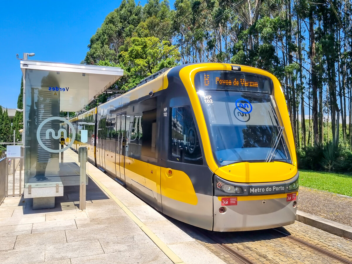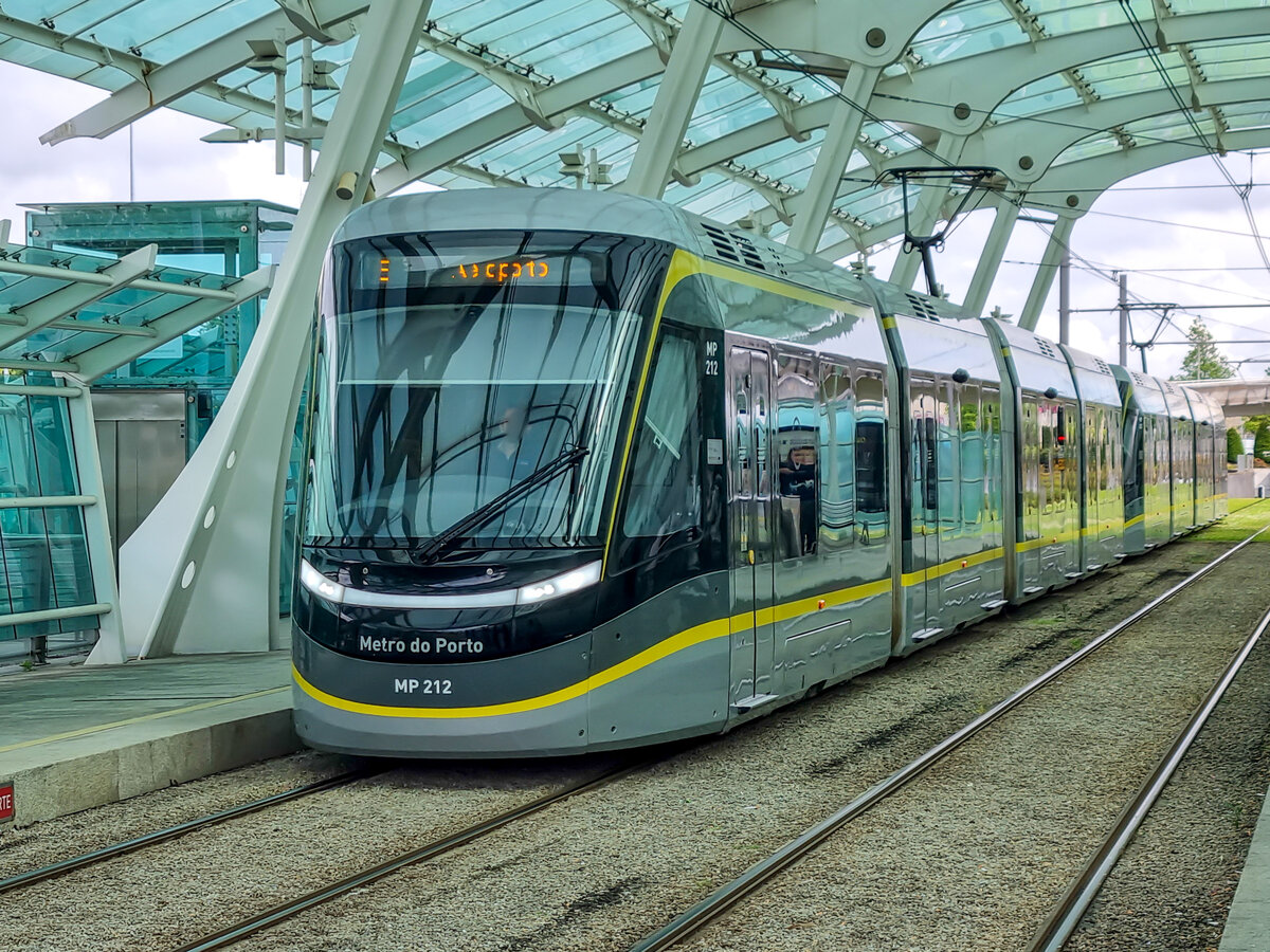 Metrozug Linie A, B oder C fährt am 10.05.2006 von Campanha zur Endstation Estadio do Dragao, aufgenommen vom CP-Hauptbahnhof Campanha, im Vordergrund CP-Ausfahrgleise in nördliche Richtung.