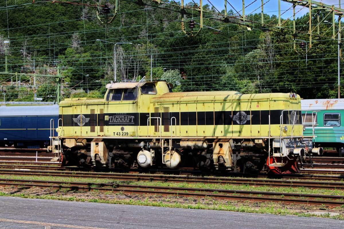 Die Littera T43 239 der Svensk Tagkraft AB "STAB" stand am 20. Juli 2023 im Bahnhof Uddevalla. Uddevalla C, 20.07.2023