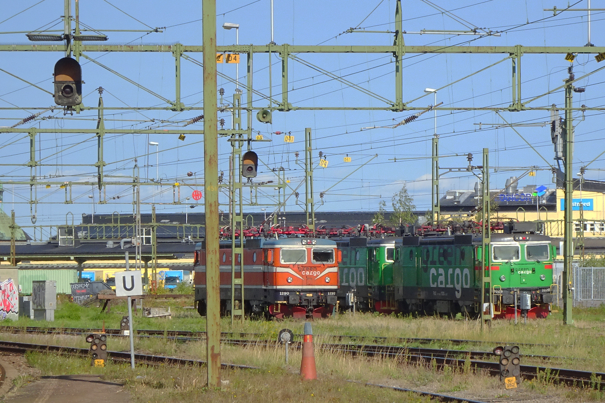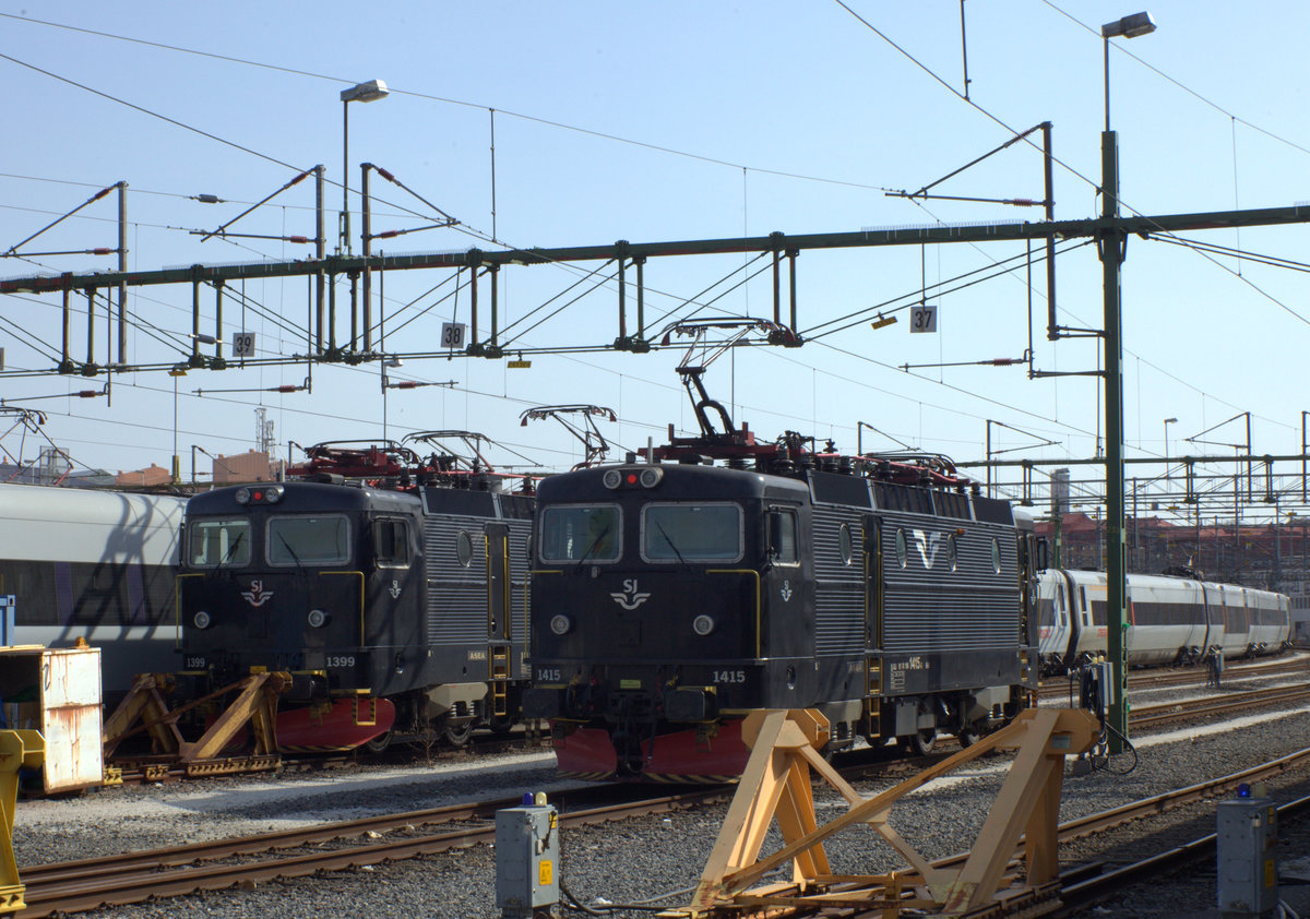 Regelmäßiger Gast in Stockholm C sind Züge der TAGAB, einer schwedischen Bahngesellschaft mit Sitz in Kristinehamn. Hier ist die Rc3 1063 der TAGAB mit einem kurzen Zug aus Kristinehamn in Stockholm C angekommen. Das Bahnsteigdach bildet hier das Fundament der darüber liegenden Gebäude, das Nachbargleis liegt bereits ganz im "Dunkeln". Neue Triebzüge für die TAGAB stehen in der Schweiz schon bereit.