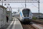 Am 10.09.2018 erreicht ein Pendeltåg nach Stockholm den Bahnhof Södertälje Hamn.