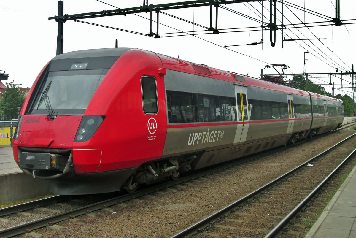 9.7.2010 15:43 X52 der Upptåget Gesellschaft aus Skutskär nach Upplands Väsby bei der Ausfahrt aus Uppsala Central von Gleis 8.