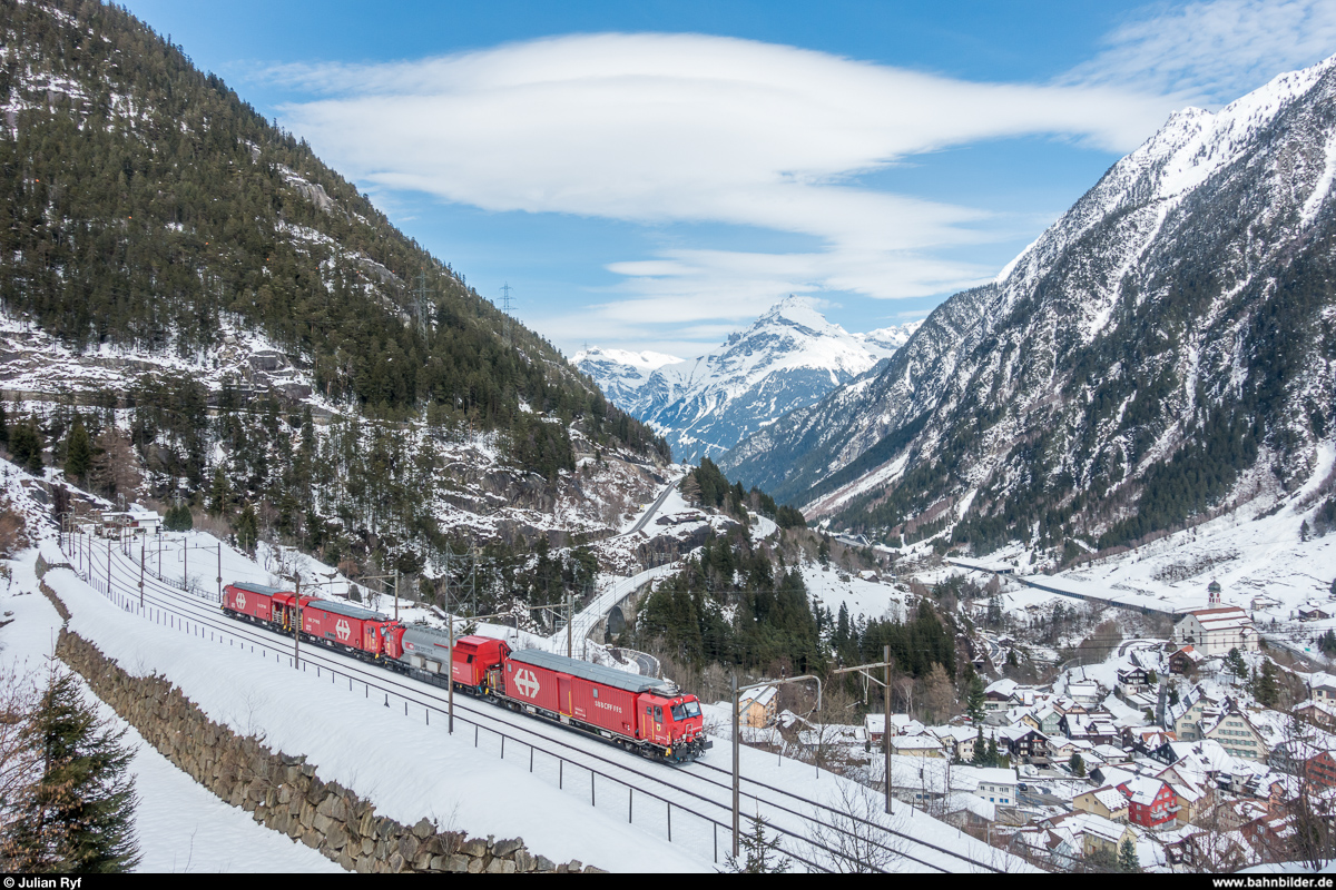 LRZ Erstfeld am 2. April 2018 bei Wassen auf dem Weg nach Göschenen.