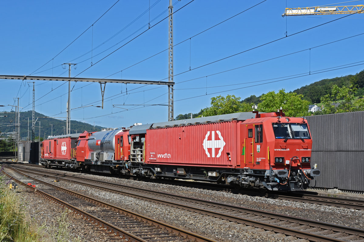 Löschzug Olten XTmas 99 85 9174 008-4 durchfährt den Bahnhof Gelterkinden. Die Aufnahme stammt vom 07.07.2020.