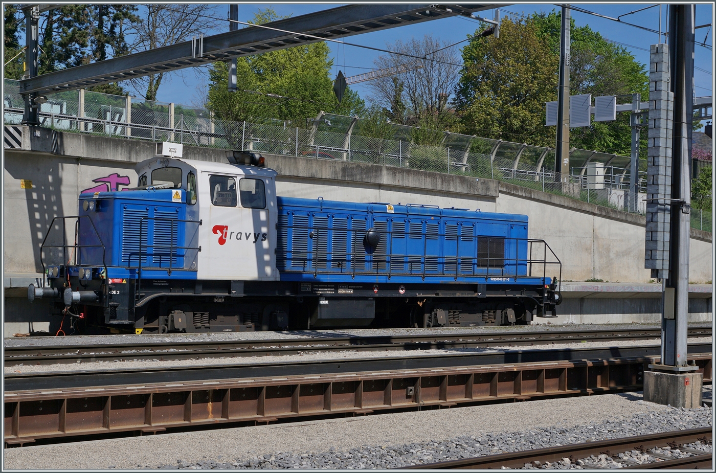 Erneut bekam ich ein Diesellok vor die Linse, bei welcher ich trotz der UIC Nummer 92858846 601-3 und der Anschrift "TRAVYS" keine weiteren Information fand.