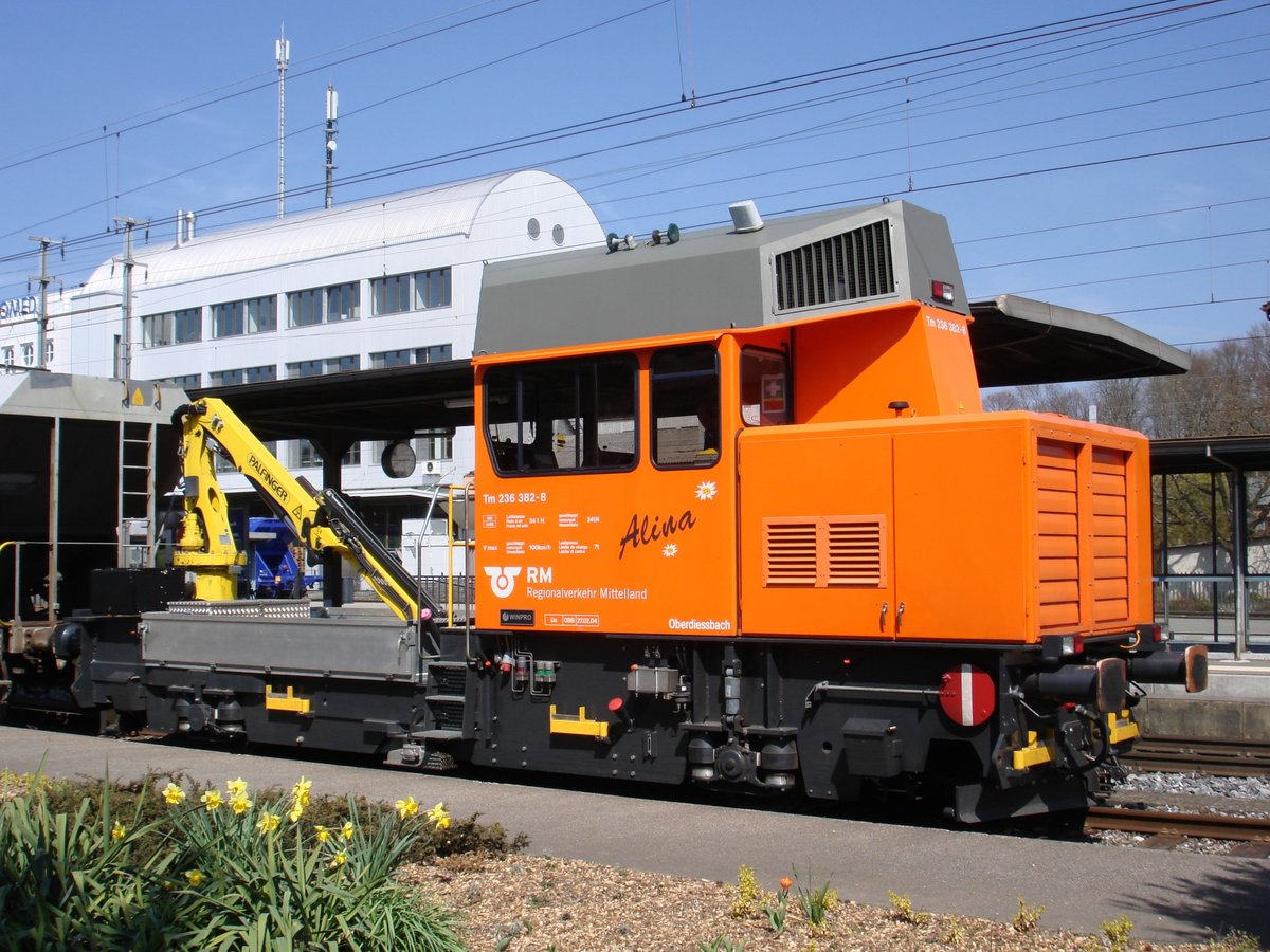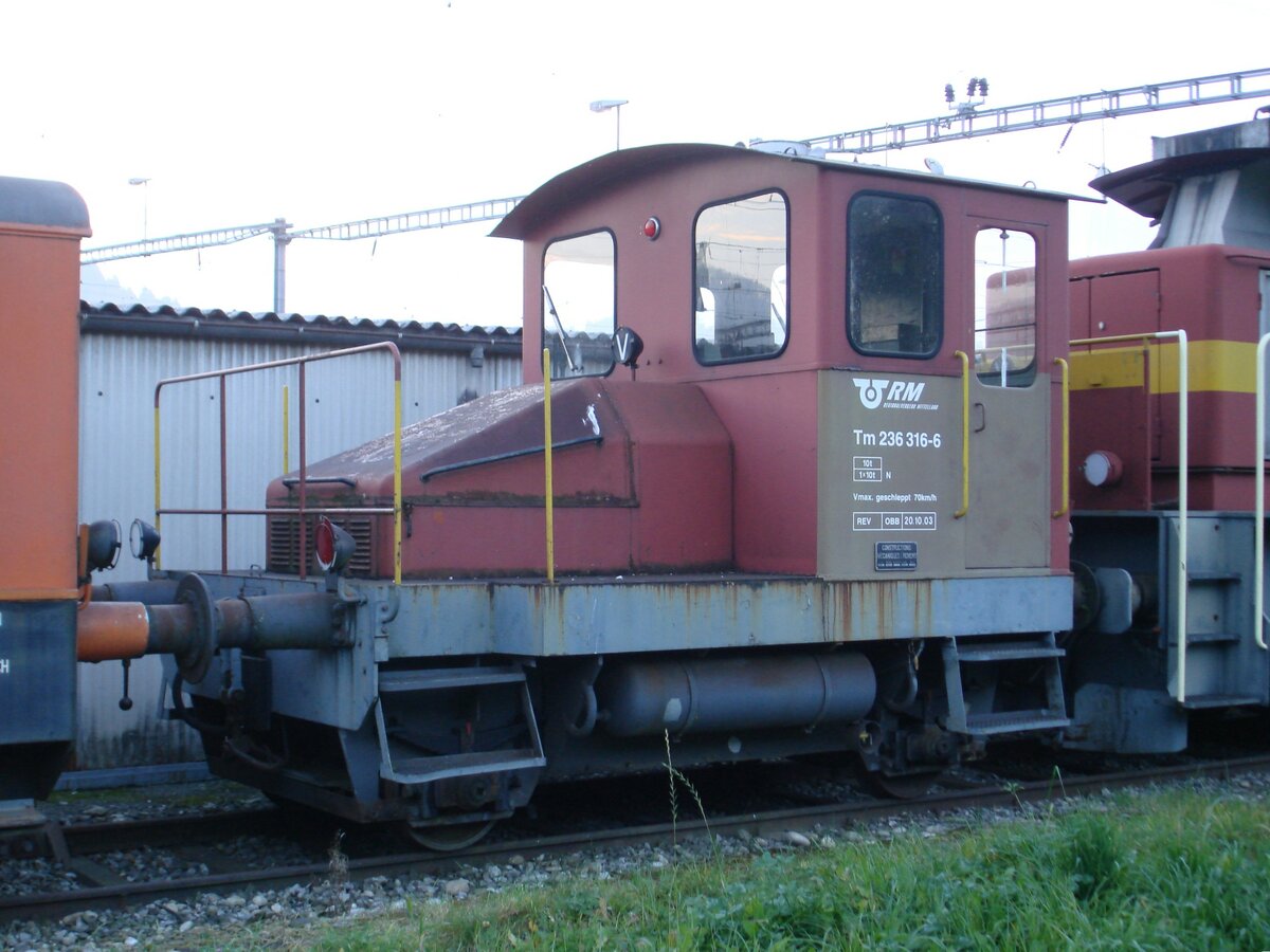 Der BLS-Tm 236 316-6 (ehemals SBB-Tm I 421, Baujahr 1961, ab 1996 EBT/RM) am 28. Oktober 2007 noch mit RM-Beschriftung bei der Werkstätte Oberburg. Die Lichtverhältnisse waren für meine damalige Kamera etwas schwierig. Das Bild ist vom Feld hinter der Werkstätte aus aufgenommen worden. Urs Aeschlimann