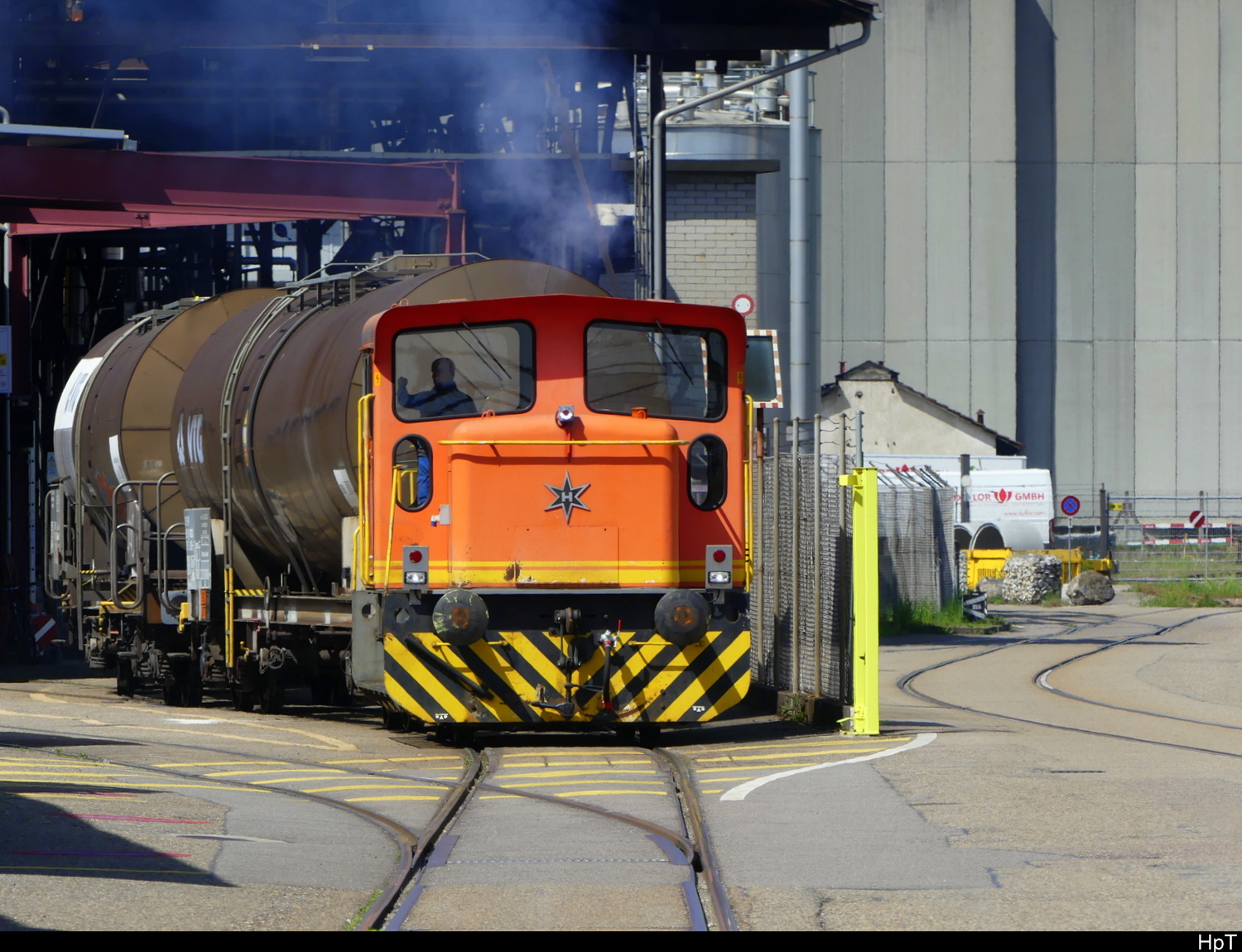 Die zweiachsige Henschel (Diesel-)Lok Greuter AG Tm 237 966-7 (Tm 2/2 Nr. 966 | CH-GREUTER 98 85 5237 966-7)steht im Bild auf einem Abstellgleis im kleinen Vorbahnhof von Bülach. Mittwoch, 5. April 2017