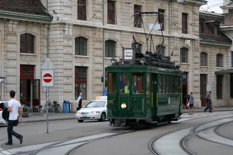Oltimer-Triebwagen (Ce 2/2) Nr 215 der BVB am 22. August 2009 auf dem Bahnhofplatz in Basel