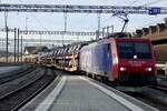 Die Re 460 117  Zürichsee  mit einem Dosto / EW IV Pendel am 23.1.25 im Bahnhof Visp. In die EW IV Pendel wurden je ein B und AS Dosto eingerieht um den Behindertengerechten Einstieg zu gewährleisten.