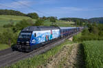 Die Re 460 010 mit "Swiss Tainable" Vollwerbung mit einer Ersatzkomposition am 27.7.23 in der Abstellanlage Bümpliz Süd.