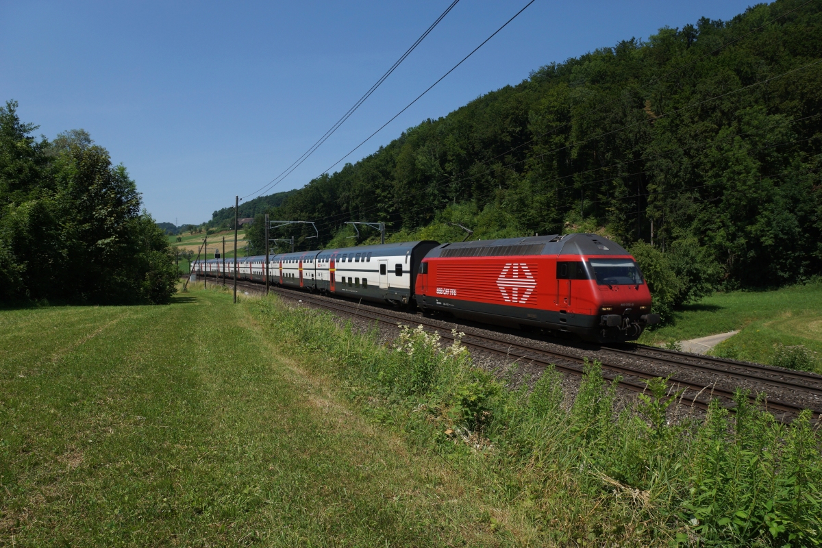 Re 460 059-9 nähert sich am 16.07.2013 Tecknau.