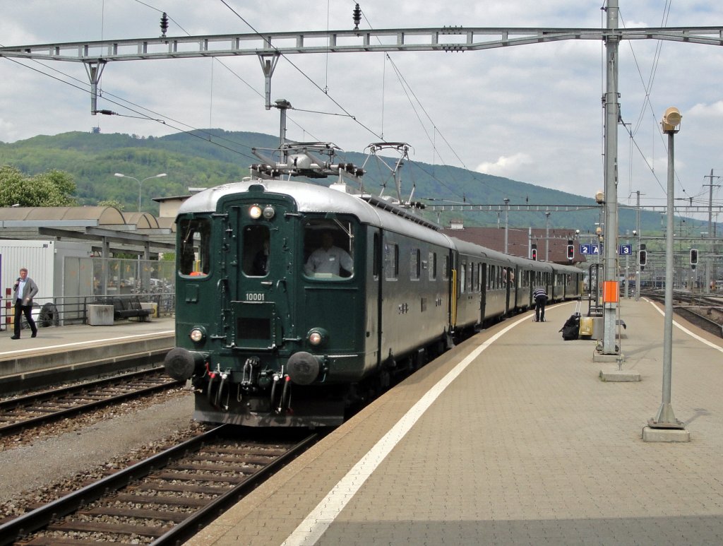 Der Shuttlezug Olten Bhf - Olten Depot am 08.05.10 bildete die Re 4/4' 10001 mit 2 B-Leichtstahlwagen und einem BDt.