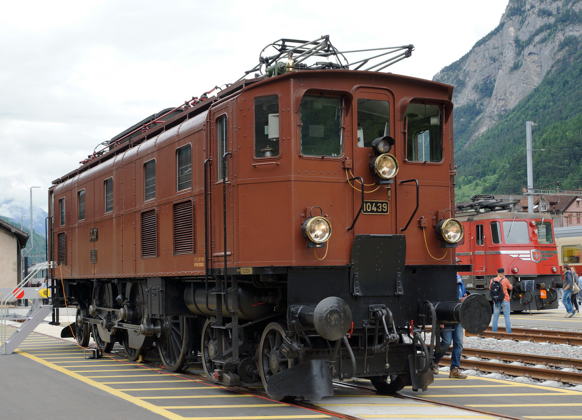 Rund um das alte SBB Depot Erstfeld, das durch die Eröffnung des Gotthard Basistunnel leider seine grosse und langjährige Bedeutung verliert, wurde Rollmaterial aus verschiedensten Epochen ausgestellt so auch die Ae 3/6 II 10439. Aufnahme vom 4. Juni 2016.