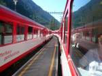 Triebwagen der MGB steht in Brig zur Abfahrt Richtung Zermatt bereit. 30.07.2007