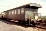 Die ehemaligen schweren SBB Stahlwagen wurden im August 1986 in Ins verewigt.
