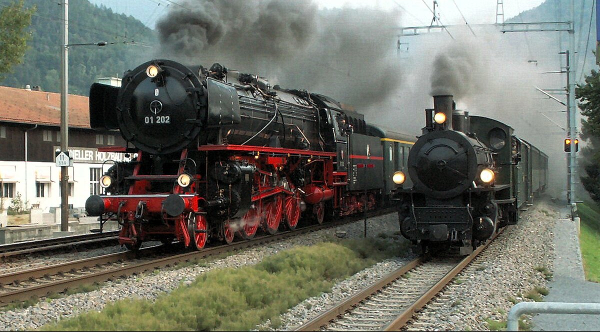 01 202 mit ihrem Zug auf Bergfahrt am Bözberg kurz vor Bözenegg. Oktober 2020.