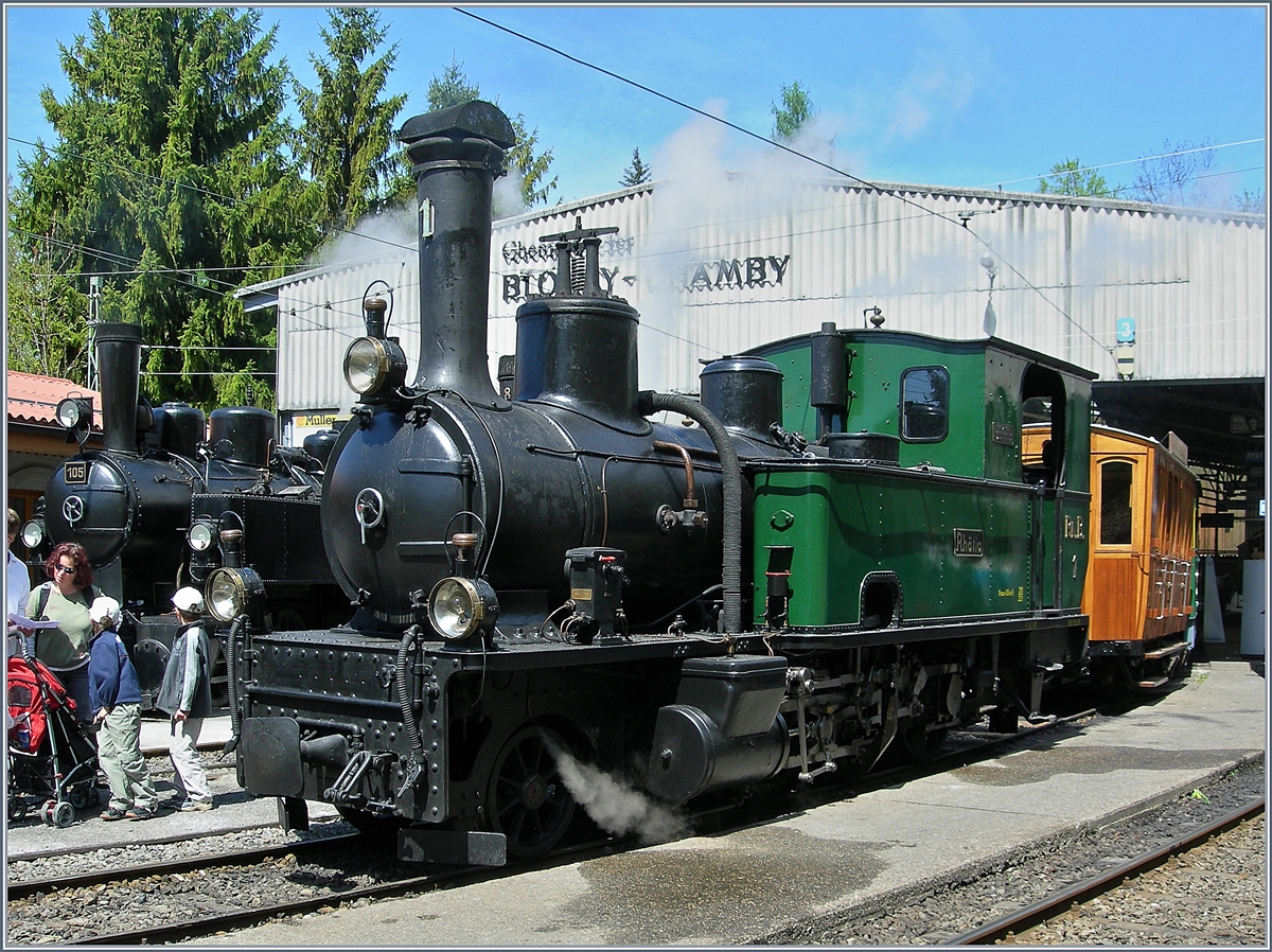 40 Jahre Blonay - Chamby Museumsbahn: Die RhB G 3/4 N° 1 Rhätia und die JS/BAM G 3/3 N° 6 in Chaulin.