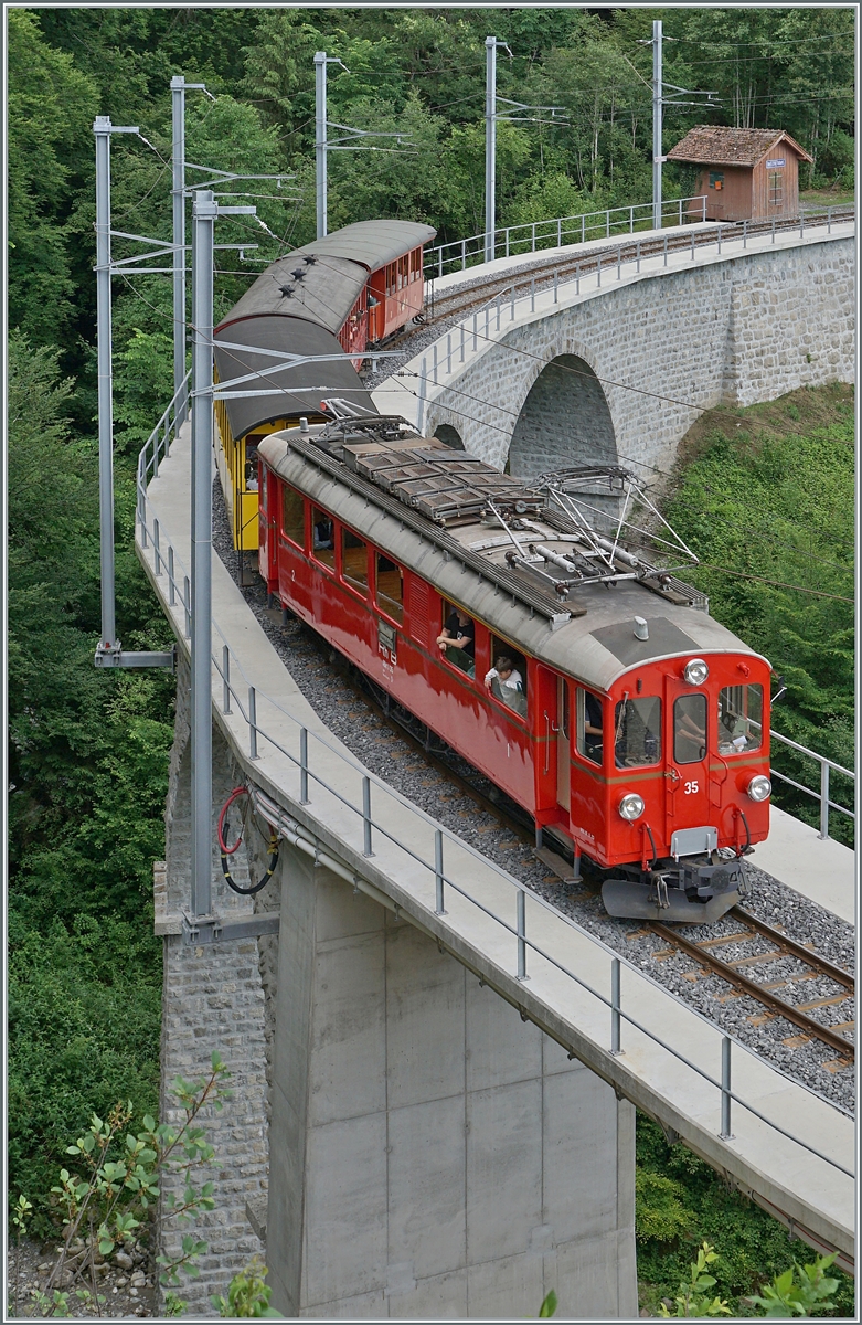 Die letztes Jahr nach der Revision wieder in Betrieb genommene BFD HG 3/4 N° 3 der Blonay Chamby Bahn scheint auch dieses Jahr die Hauptlast des Dampfzugverkehrs zu tragen. Das Bild zeigt die formschöne Lok mit dem ersten Dampfzug der Saison kurz nach der Abfahrt in Blonay auf dem Weg nach Chaulin.