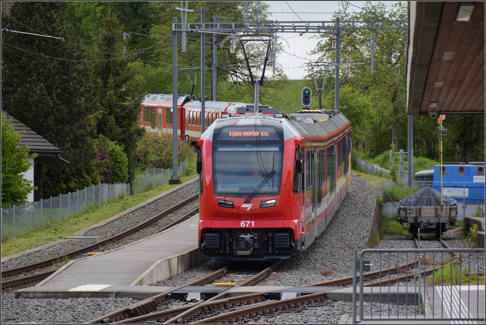 Allerdings muss ich auch hinterherschieben, die Lichtsituation war sehr anspruchsvoll. Für Dich vielleicht vergleichbar an der Brockenbahn im oberen Abschnitt oberhalb Schirke, aber mit hochgewachsenen Bäumen. Die CJ-Strecken sind fast vollständig zwischen 900 und 1100 Metern Meereshöhe in den Freibergen (Franches-Montagnes), einer Hochebene mit ganz eigenem Licht, das mich in den letzten Monaten absolut fasziniert hat. Die Wolken ziehen gerne aufgerissen recht tief über die Landschaft. Interessantes Streulicht mit Spotlighteffekten sind durchaus an der Tagesordnung. Die schattigen Flecken über dem Wald erscheinen teilweise extrem dunkel. Es war also schon Intention, den Wald im Wolkenschatten so dunkel zu belassen wie er vor Ort erscheint und den gepflegten Lack der Loks auch gepflegt erscheinen zu lassen, während das Fahrwerk sichtbar bleibt. Das Spotlight war etwa ein Viertel so stark wie an einem hellen Sommertag, wie mir die Exif Werte verraten, daher die Wiese nicht hellgrün. Insofern hatte ich meine dunklere erste Version beim Hochladen der Präferenz gegeben, da bei allem anderen insbesonde der Wald gelitten hatte.