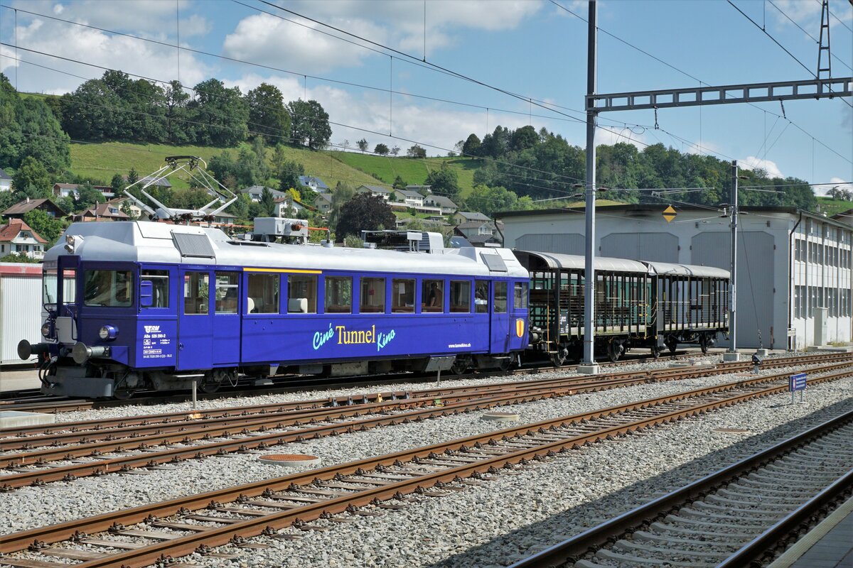 Auch ausserhalb der heimischen Geleise durch den Weissenstein-Tunnel passierte der ABe 526 290-2, ehemals SOB, vom Tunnelkino auf der Sonderfahrt nach Full zum Depotfest einen nur kleinen Tunnel bei der Ruine Pfeffingen am 7. Mai 2022.