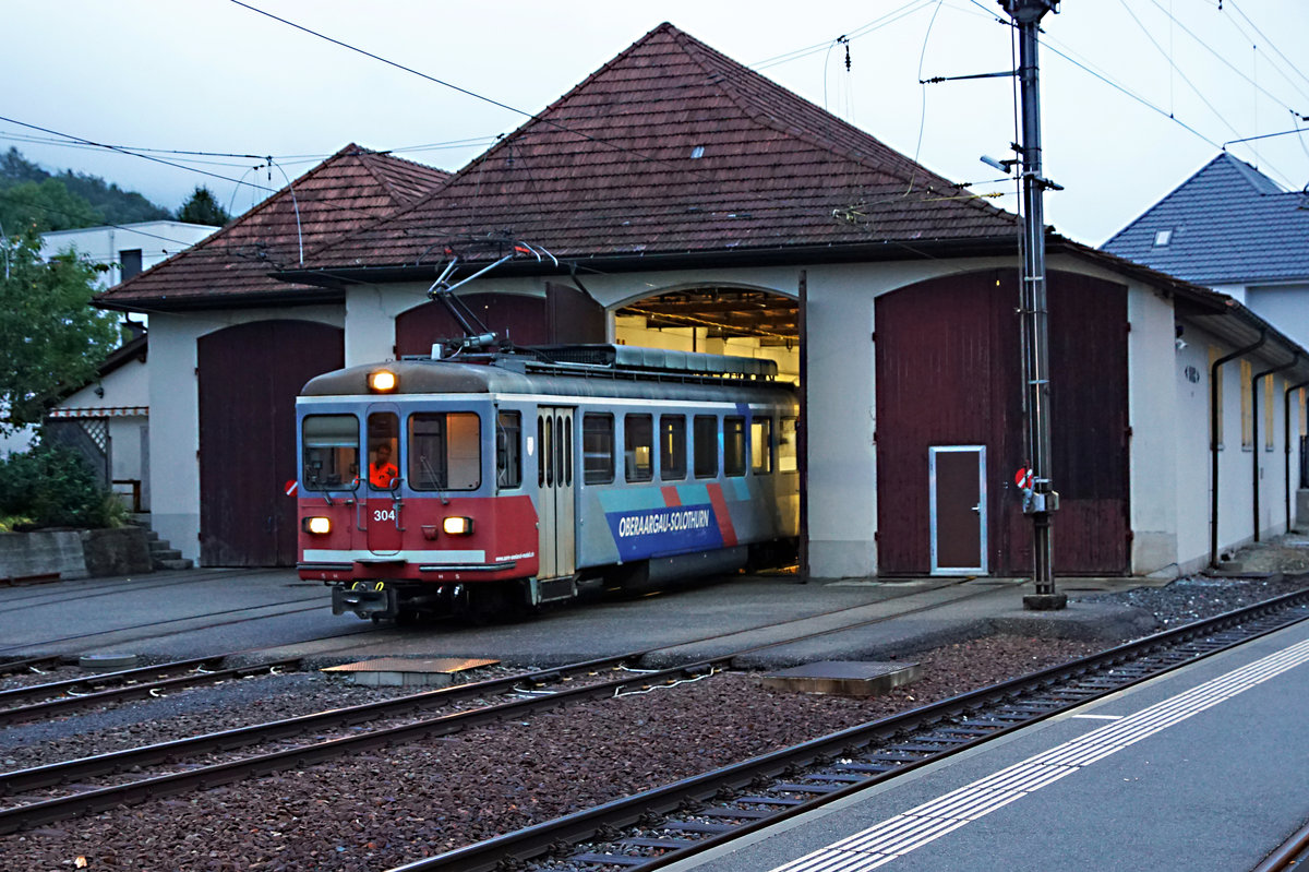 Be 4/4 304 beim Verlassen des Depots Wiedlisbach nach den erfolgten Unterhaltsarben.