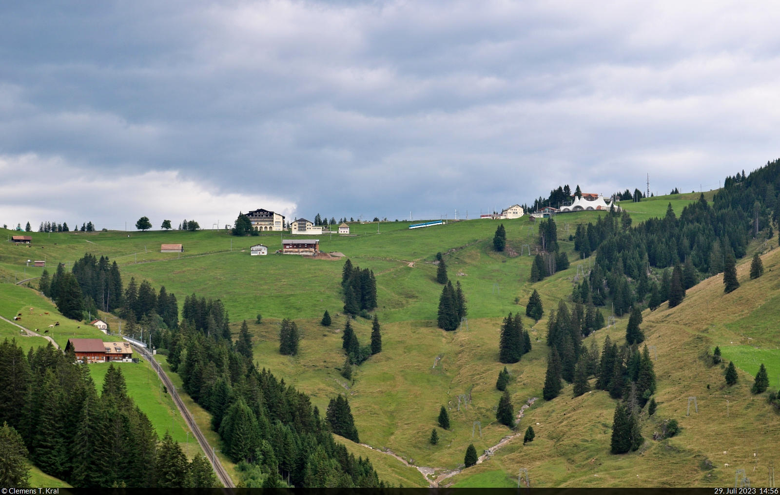 Am 24.05.2025 war die ARB in Arth-Goldau wenig frequentiert, so dass einige Fahrzeuge abgestellt auf ihren nächsten Einsatz warteten. Hier steht Elektrotriebwagen 13 auf dem Verbindungsgleis zum unteren Bahnbereich des Bahnhofs Arth-Goldau.