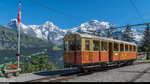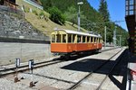 Wie üblich verkehrt der Zug mit einem Vorstellwagen Seite Grütschalp.