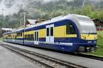 Mit dem BOB ABDeh 8/8 323 kommt kurz nach der Abfahrt in Zweilütschinen der BOB Regionalzug nach Lauterbrunnen (Spitze) bzw. Grindelwald (Schluss) entgegen, hier ist nun der Zug in seiner ganzen Länge zu sehen. Unser Zug hat ebenfalls die gleiche Länge und alle halbe Stunde verkehrt ein Zug, so dass man sich etwa ausmalen kann, welche Menschenmassen die BOB Tag für Tag in die beschauliche Natur der Jungfrauregion transportieret.