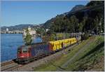 Der SSIF der ABe 12/16 (ABe/P/Be/Be) N° 85 "Trontano", als SSIF Treno Panoramico 43 von Domodossola nach Locarno unterwegs, kreuzt in Intagna den FART ABe 4/6 53, der als Regionalzug 310 von Locarno nach Camedo fährt.
