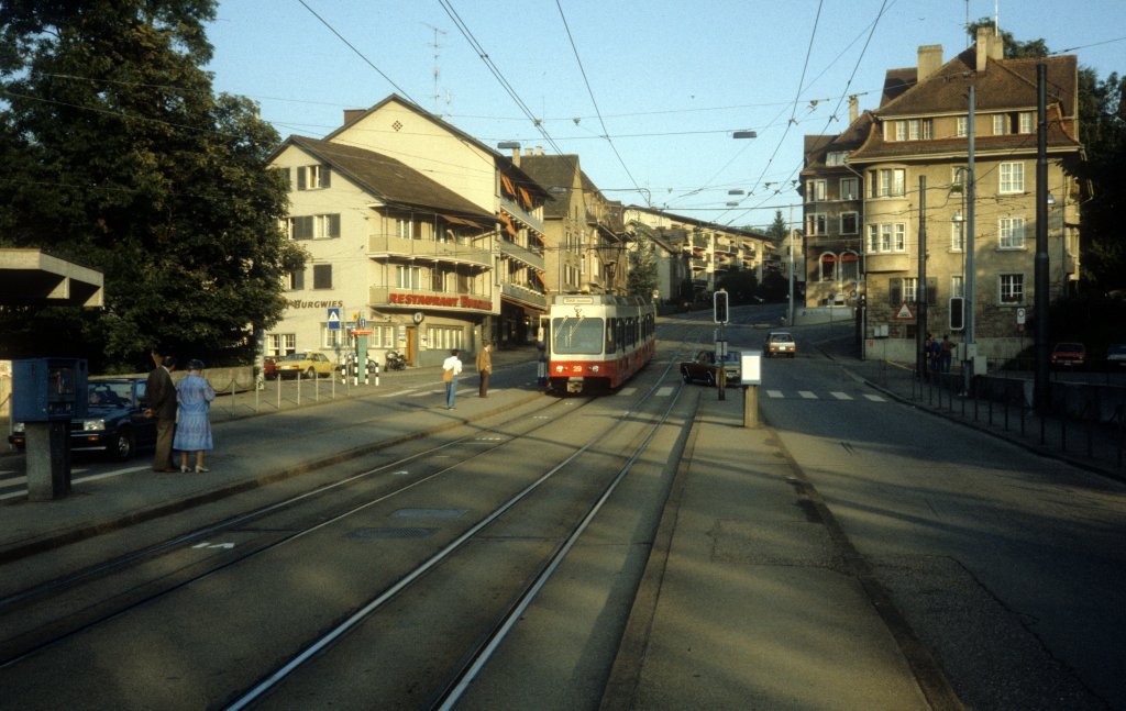 Zürich Forchbahn Tw 29 Forchstrasse / Burgwies im Juli 1983.