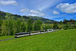 das spiegelnde Ding passt nicht besonders gut in die Châlet Landschaft von Gstaad &Co, eignet sich aber, wie das Bild zeigt, perfekt zur Kreation von Bahnbilder der besonderen Art.