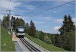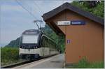 Die beiden Mohnblumen beim "Stationsgebäude" von Sonzier strahlen mit den Schlusslichtern des hier wendenden MVR MOB ABeh 2/6 7504 "Vevey" um die Wette.