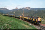 Die MOB Ge 4/4 8004 ist mit ihrem PE 2119 MOB Golden Pass Panoramic auf der 93 Meter langen und 1945 eröffneten Bois de Chenaux Brücke in Richtung Montreux unterwegs.
