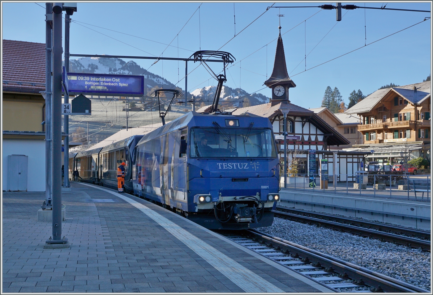 Die MOB Ge 4/4 8001 verlässt ihren ihrem Golden Pass Express GPX und fährt als Rangierfahrt auf eine Abstellgeleis und - von wegen "Schweizer Lichtwechsel"...